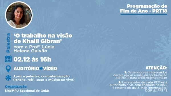 As inscrições podem ser realizadas pelo e-mail gerenciaadministrativa@sindmpu.org.br entre os dias 1° e 5 de setembro de 2022.