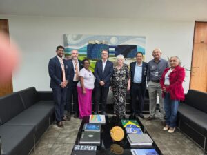 O Diretor Nacional do SINDMPU Renato Cantoni, juntamente com os Diretores das Seções Sindicais da Bahia – José Marcos Lisboa, São Paulo – Elizabeth Zimmerman, Goiás – Gilmar Barros Costa, Pará – Márcio, Nira e a Servidora Aposentada do Tocantins – Lúcia Viana estiveram reunidos com Alexandre Varela, Assessor Especial do Ministro Guilherme Boulos da Secretaria Geral da Presidência da República.